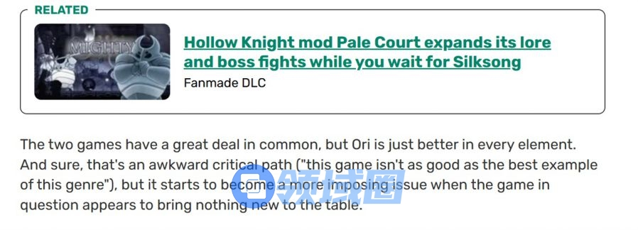游戏刚发售时,RockPaperShortGun认为《空洞骑士》毫无新意