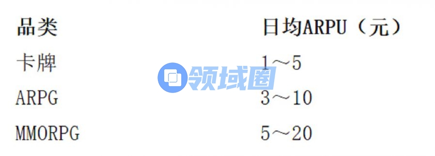 而 LTV 中最核心的变量是 ARPU(用户平均价值)。LTV=留存率*ARPU,留存是基数,付费(ARPU)是系数,留存是基础,付费本身是留存的一个漏斗。ARPU 的合理范围通常如下: