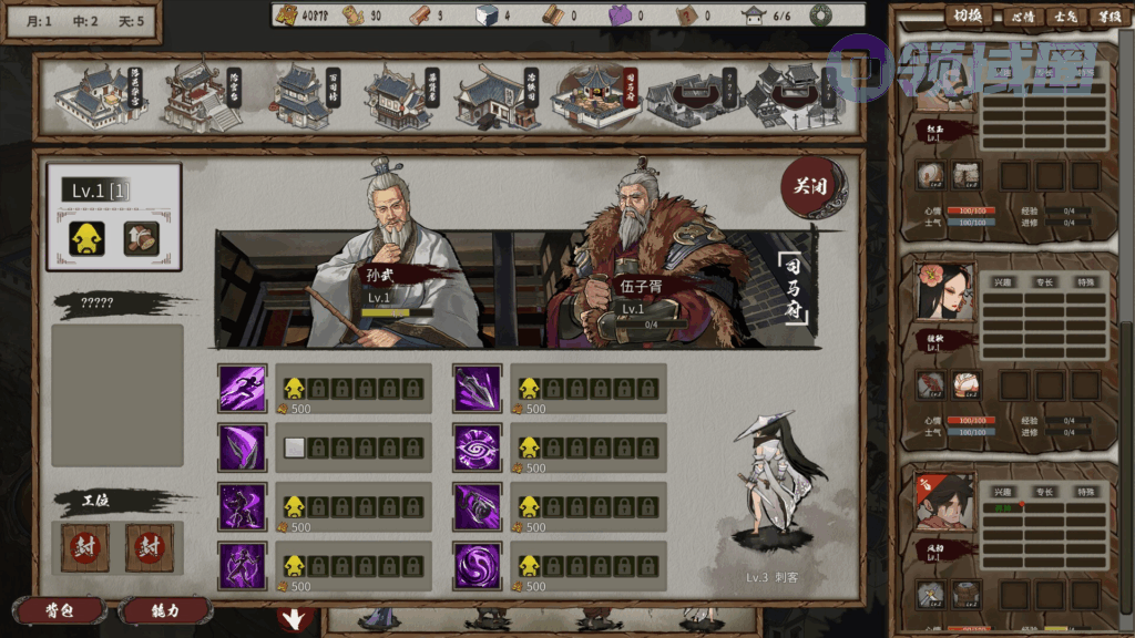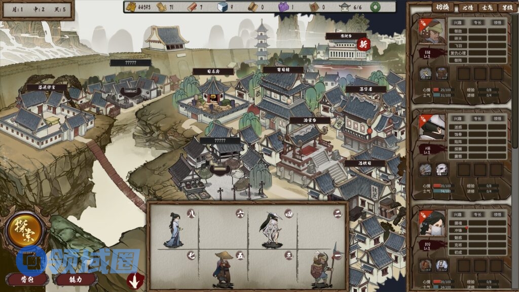 每当探险结束返回城镇,短暂的休憩成为侠客们难得的放松时刻。在这里,你可以兴建各类功能建筑,招引春秋时代的传奇名士前来相投——信陵君魏无忌助你广纳豪杰,神匠干将为你锤炼兵器,谋圣鬼谷子则能提振全队士气。你还可通过祭祀与研究不断提升队伍实力,为未来的征途做好准备。