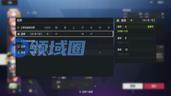简单而言,游戏的矩阵是一套分为 攻势、防御、治疗、速度、控制等五大类,涵盖了几乎所有功能性效果,并分为4/8/12等等差效果,矩阵数值累加的方式一方面来自一套名叫“源器”的装备系统,另一方面则来自“智壳”。