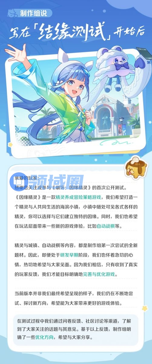 开发组在首测结束后发布的公告则表示精灵与城镇、自动战棋等内容都是制作组第一次尝试的全新题材,并且说相信只有收到了玩家们的真实反馈意见,才能目标明确地完善与优化游戏。