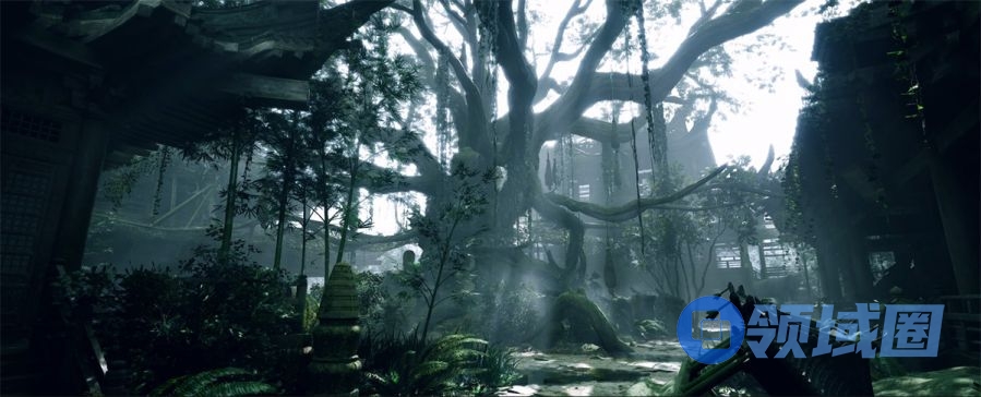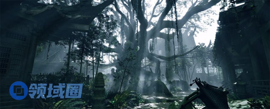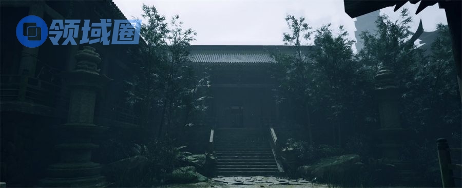 以大家熟悉的观音禅院为例,整张地图的色调是青灰色调,低饱和度,高对比度。天气状况有点像阴天到多云,雨后阳光偶尔从云层缝隙中投射出来那种效果,场景中弥漫着浓厚的雾气。