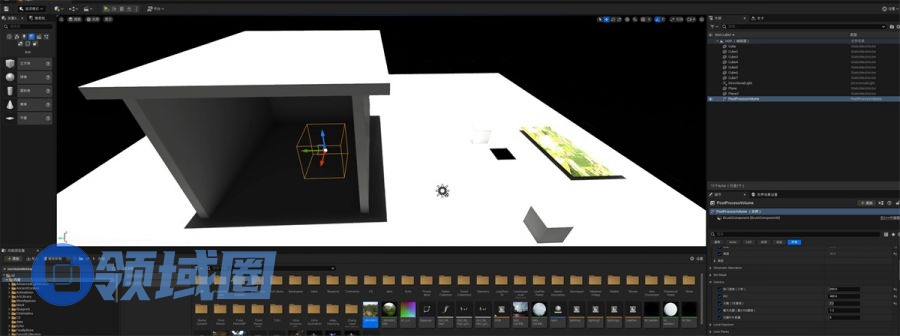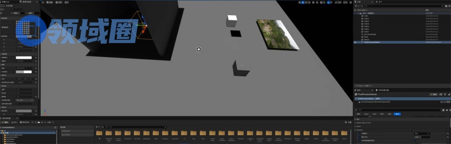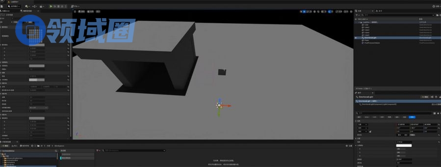 打光方式还是先放常规的灯光四件套 平行光directionalLight,天空光skylight,天空大气skyatmosphere,加后期盒子postprocess volume。首先固定曝光状态,确认ev100值=0。曝光补偿为0。