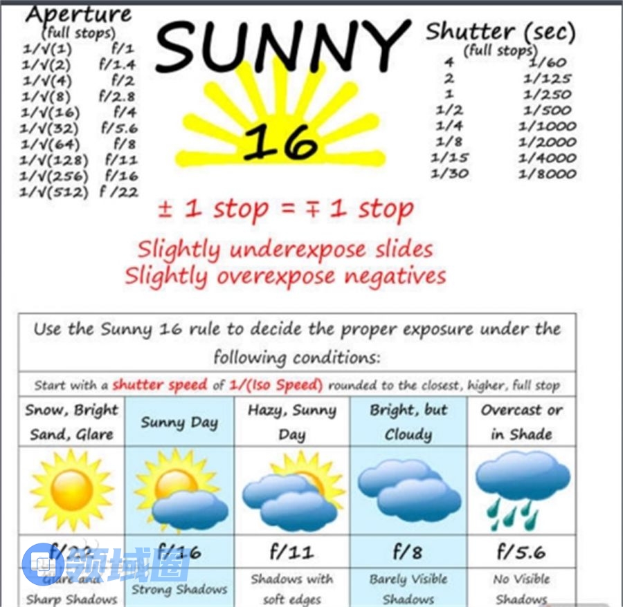 其实很简单,直接抄就完事了。摄影界有个阳光16法则,总结了不同的光照环境下的曝光设置。根据维基百科描述,阳光16的基本法则如下:在室外阳光下,如果光圈是f/16,则快门速度应是所用胶片的国际感光度指数的倒数。例如,在室外阳光下,如用光圈是f/16,而所用胶片的感光度为ISO100,则快门应为1/100秒。