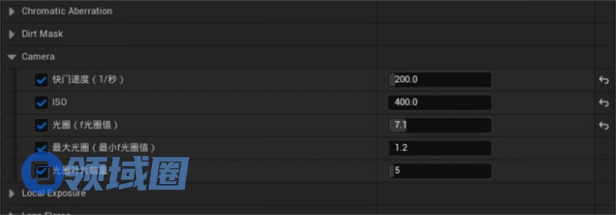 postprocess的曝光设置改为手动,确保勾选了应用物理相机曝光,然后填入照片中的摄影参数。
