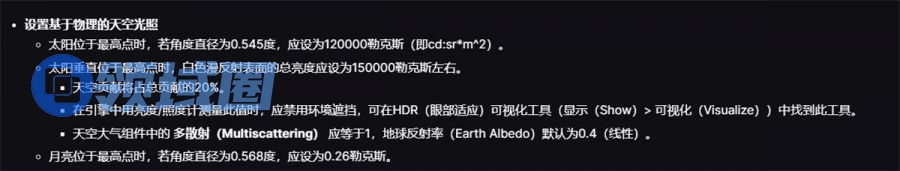 所以从物理角度讲,很多美术习惯性的根据时间段和阳光角度改变太阳光强的做法是错误的,虚幻引擎的光照系统支持星球级别的光照效果。