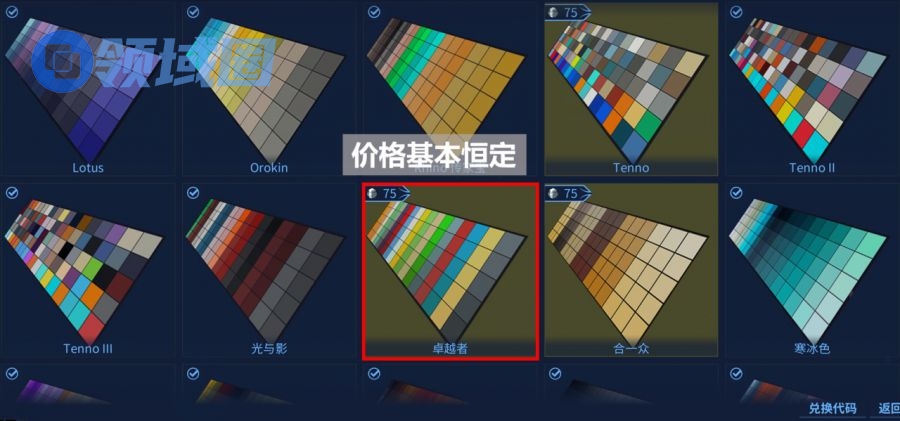 内容介绍:《Warframe》中调色盘获取方式较多,且价格基本恒定,为75P(约¥25)。几乎所有外观类内容均可自定义颜色,且有不同区域分色,自定义程度很高。