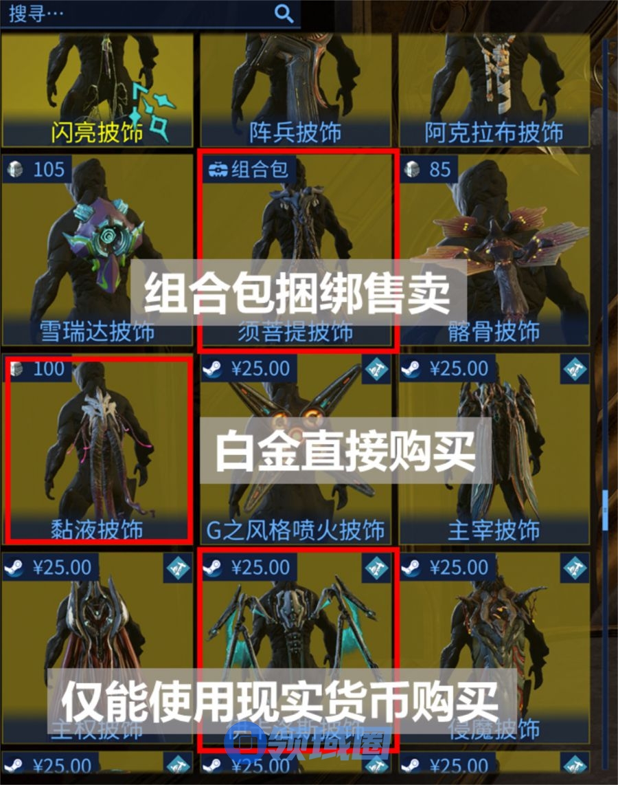 游戏内售卖多种类型的槽位,玩家购买最多的便是战甲、武器、裂罅MOD槽位,价格从12-60白金不等