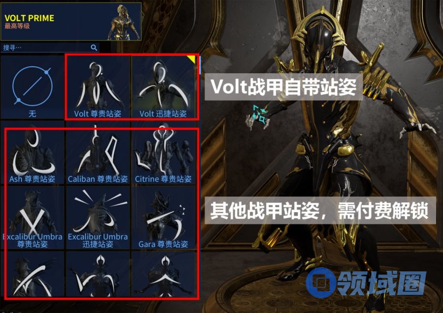 战甲固定有2-3个站姿。不同站姿有不同待机动作。付费解锁其他战甲站姿,站姿解锁后所有战甲通用。