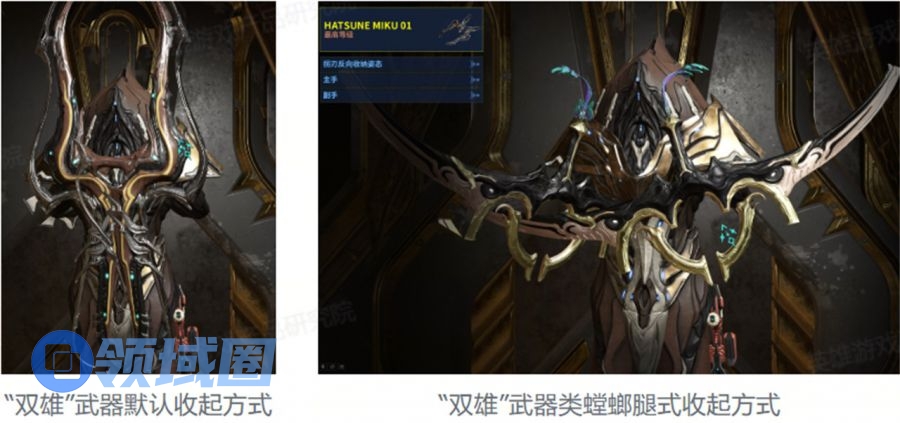 武器在收起状态下的呈现形式,通常为近战武器,自由度较高。