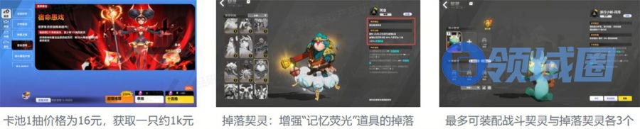 相同的内容也在《火炬之光:无限》中也有体现。游戏中契灵(宠物)会提供机制类增益BUFF,大致分为战斗契灵和掉落契灵。大部分契灵需要在卡池中抽取,一只的价格约为1000元。