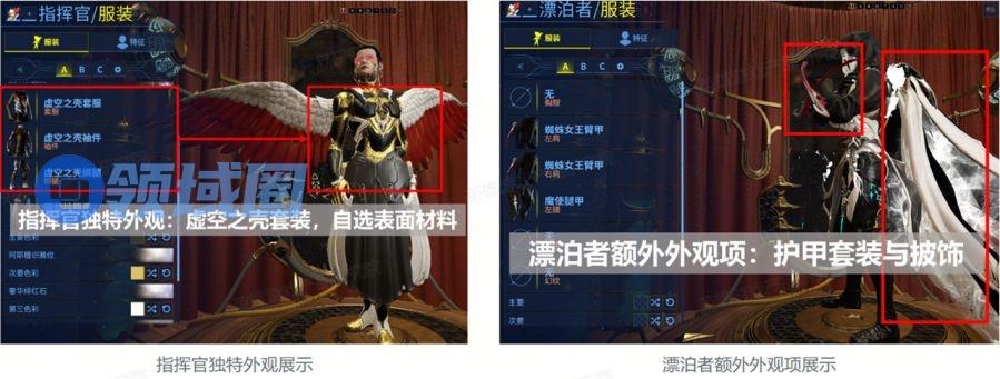 图中标注红色的为漂泊者额外的外观项。