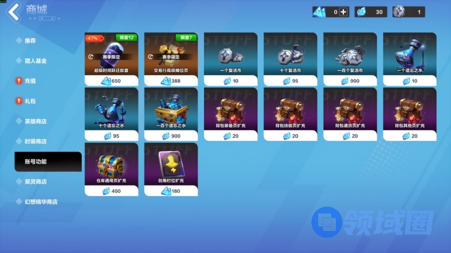 《火炬之光:无限》中也有类似权益类付费,86级角色直升券(65元),交易行高级摊位页(38.8元),复活币(1元),天赋重置券(1元),背包页扩充(2元),仓库页扩充(40元),角色栏位(18元)。