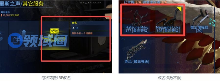 除战甲外,所有武器、同伴均可改名,每次15P(约¥5),次数不限。玩家ID更改每次200P(约¥67)