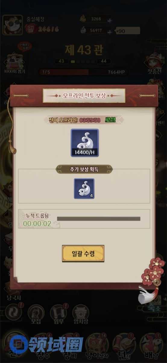 《喵喵军团》充分地发挥闲置 RPG 的特点,除自动战斗外,游戏还有离线挂机收益,即使关闭游戏,战斗进度和奖励也会累积。这确保了玩家即使在线时间有限,也能获得稳定的成长反馈,契合现代玩家碎片化的娱乐习惯,提升了长期留存意愿。