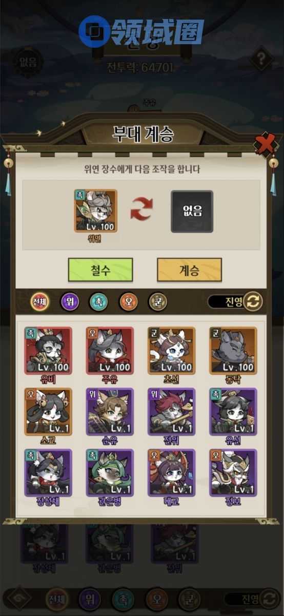 具体而言,《喵喵军团》虽以三国人物为原型,却创新地将其进行萌系演绎,并巧妙融入韩国历史上广为人知的将领,如李舜臣等,形成一种既熟悉又新奇的叙事体验。这种设定不仅降低了文化接受门槛,更通过角色设定的混搭,激发了韩国用户的文化亲近感。