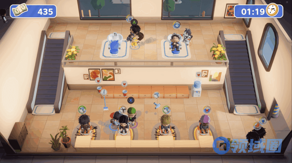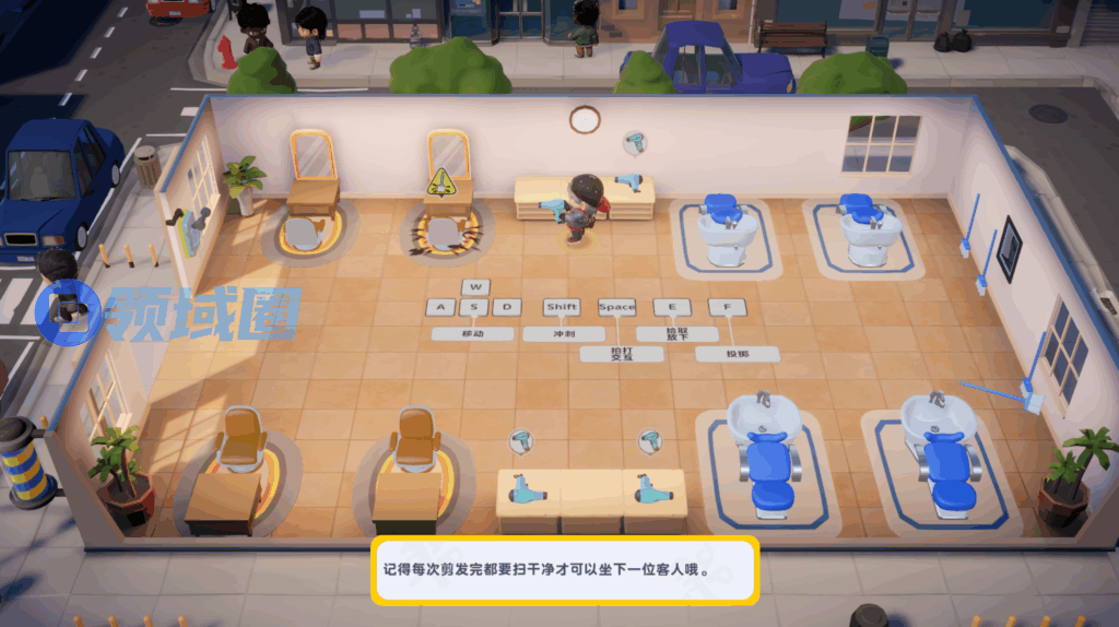 相较于其他派对游戏,主打欢乐的《乱剪一通》设置了合适的难度曲线。从最简单的洗头、剪发、打扫卫生,再到后续的烫头、染发、按摩、剃须QTE等……无论你是硬核操作党还是休闲 “手残党”,都能在3分钟内迅速入门。甚至不用死记硬背哪些按键,哪怕是WASD控制移动搭配一个空格键,就能让各路客人慷慨撒币。再加上这次公开的4名角色各自都有自己独特的加成属性,完全不用担心操作不过来而直接大脑过载!