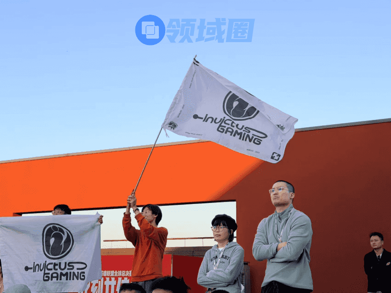 当比赛过半时,iG队旗被高高举起,场地里回荡的都是“iG加油”,大家的热血再那一刻再次被点燃,这也是独属于线下观赛的魔法