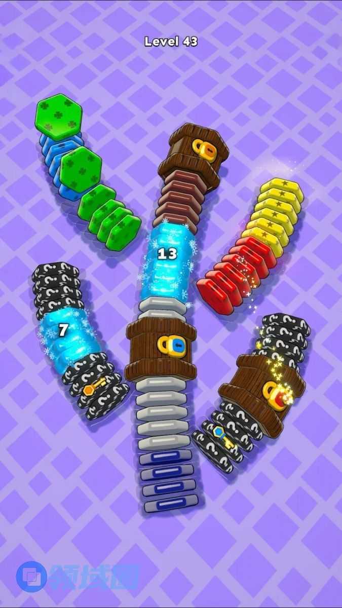 介绍:熟悉的六边形sort,不太熟悉的拼法,同样还是sort玩法,这次换成了俯视角,把各色六边形chips进行颜色sort整理,把两个chips交换,最终把同色chips放在一起,配合上rollic那套关卡元素,整个做成了一种sort益智关卡玩法,而且ASMR做的依然在线,震动、音效、手感、动效都很不错,是个不错的gameplay思路。