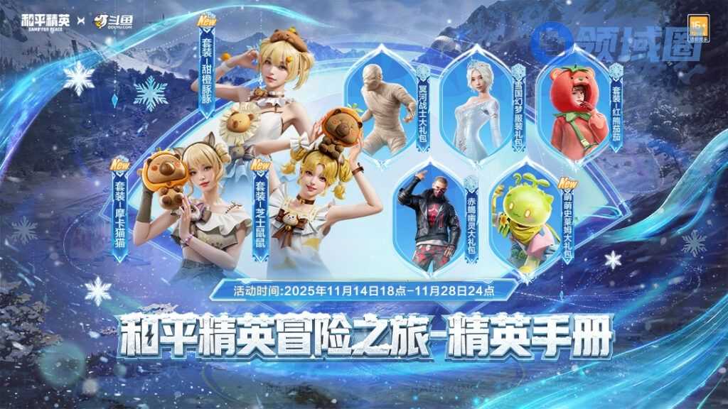 为了让特种兵及粉丝更具参与感,11月14日18点,《斗鱼和平精英冒险之旅》阿勒泰篇预热活动将抢先开启,“雪国幻梦服装礼包”“冥河战士大礼包”、套装-甜橙豚豚、套装-芝士鼠鼠、套装-摩卡猫猫等超多游戏皮肤、道具将在斗鱼精英手册中开启限时限量兑换。11月20日-23日节目期间,每晚18点售罄道具还将进行限量补货,观众透过主播镜头游览阿勒泰之余,还能够在直播间兑换心仪的游戏道具。