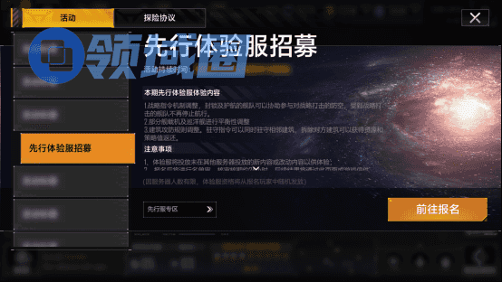 在先行服,玩家不仅可以提前体验新机制,还搭建了直接的反馈通道,可以跟官方直接提出试玩建议和意见。本次招募面向所有已经经历过1次及以上星系开拓,且历史基地扩建等级达到区域2及以上的玩家。名额有限,手慢无,快进服成为第一批探索新改动的先锋吧!
