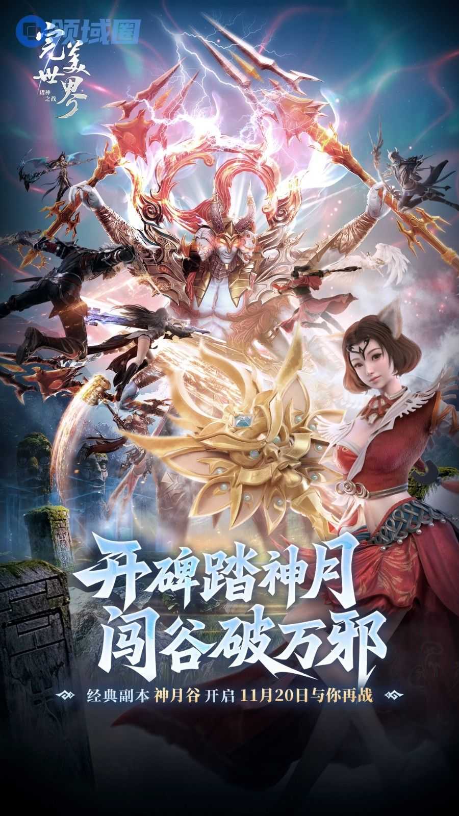 在11月20日的全新版本中,《完美世界:诸神之战》将全新开启经典副本神月谷,熟悉的开碑闯谷、经典的巫月、玄月、灵月等八方谷隽秀的自然风光、圆月之湖的史诗决战……都能再次领略,体验升级!