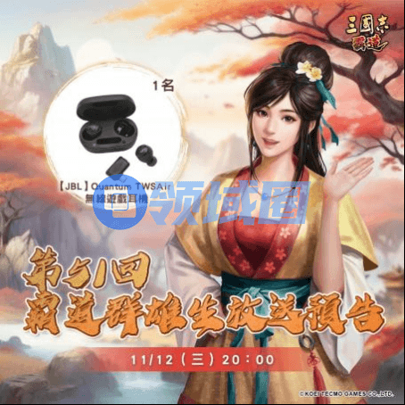 本次节目也为玩家准备实体好礼,在在线观看节目的玩家们,只要追踪『三国志霸道』 Facebook 粉丝专页、分享《霸道群雄生放送》第 51 回直播抽奖贴文以及@一位好友与留言,即有机会获得【JBL】Quantum TWSAir 无线游戏耳机(价值 NT$2,990)豪华大奖!请玩家们务必锁定『三国志 霸道』官方 Facebook 粉丝专页或台湾光荣特库摩YouTube 频道共同参与直播活动。