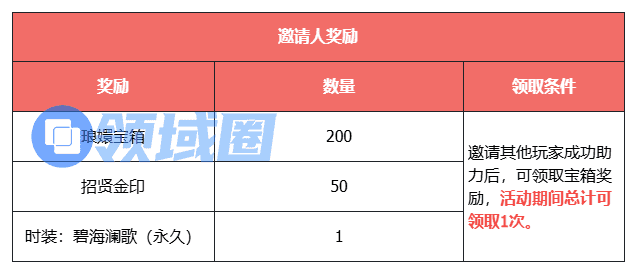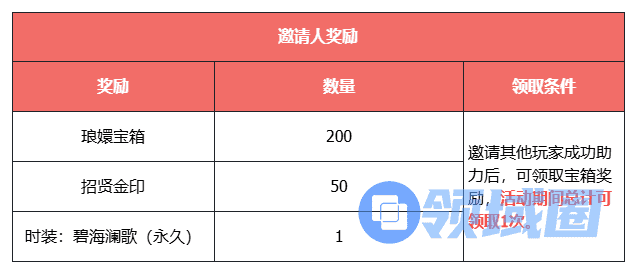 •当宝箱解锁后,打开必定获得50个招贤金印(复兴之诏活动兑换币),200个琅嬛宝箱,以及时装:碧海澜歌(永久)。活动期间总计可领取1次。