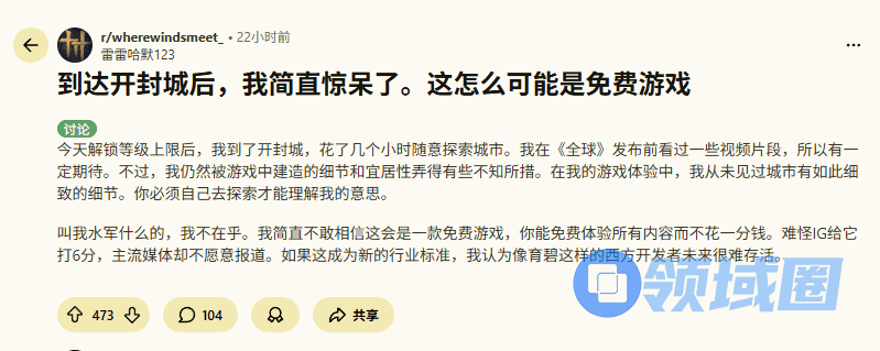 同样的讨论也出现在Reddit社区,部分用户在体验游戏场景后质疑如此规模的作品为何不收取费用。