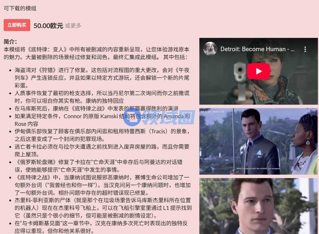 近期,有国外玩家为近几年大火的互动剧情游戏《底特律:变人》发布了一款全局mod,该mod恢复了游戏大量删减内容。据作者所说,所有恢复的对话和字幕均已完成本地化。