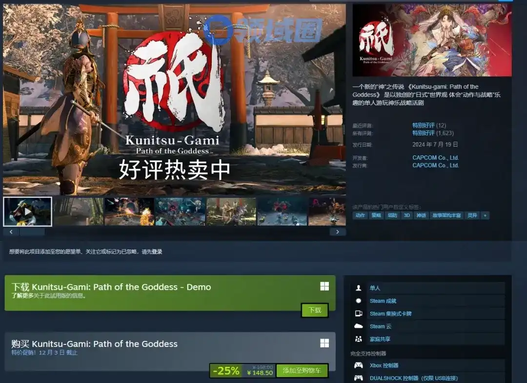 卡普空旗下动作策略游戏《祇:女神之道》近日在Steam平台开启新史低促销。原价198元的游戏现享7.5折优惠,仅需148.5元,本次特惠活动将持续至12月3日结束。