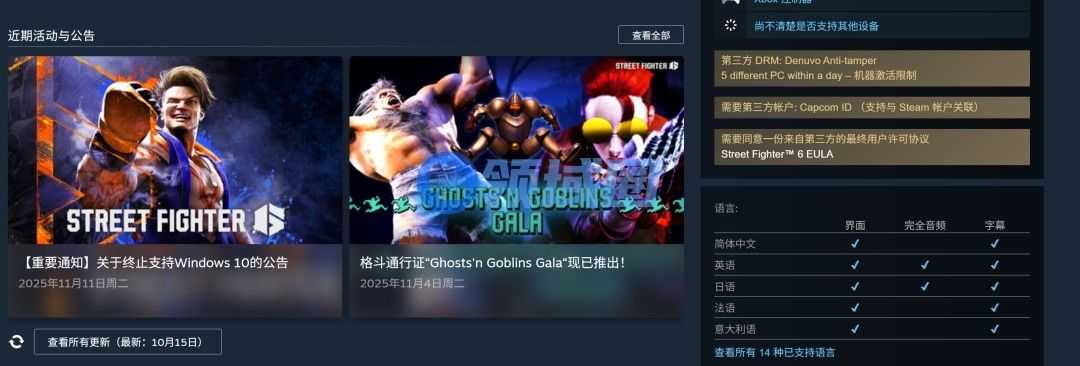 《街头霸王6》发售已经两年,PC Steam版仍然采用D加密系统,尚未移除。