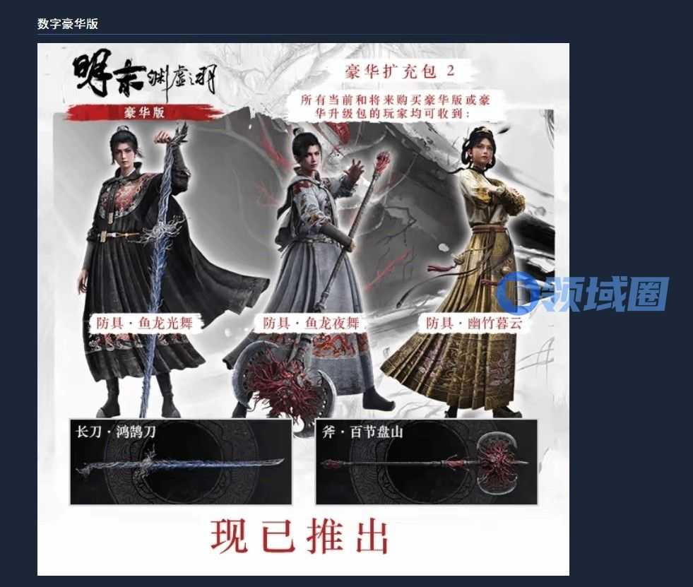 本次更新已上线豪华扩充包第二部分,包含3套全新防具+2把武器。至此,所有购买了豪华版与豪华升级包的玩家都可在游戏中获得相应道具,豪华版内容共计9款防具与8把武器。