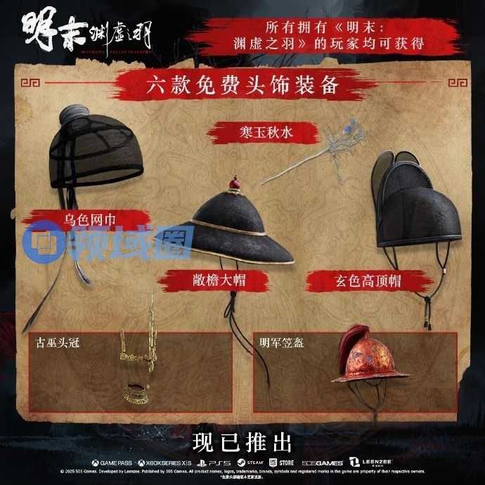 为感谢每一位支持《明末:渊虚之羽》的玩家,无论您购买的是哪个版本,更新游戏后均可免费领取4款专属头饰。至此,玩家更新1.7版本后,共计可领取6款免费头饰装备(涵盖1.6 版本更新2款)。