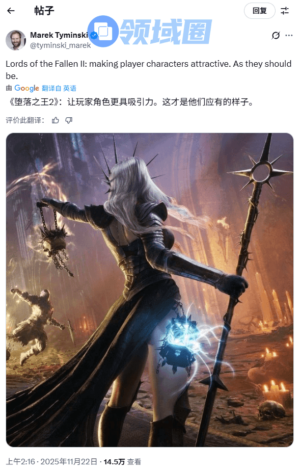 CI Games工作室在推进《堕落之主2》开发前,公布了新的宣传内容。公司创始人兼首席执行官Marek Tyminski在社交平台X发布了一张女性角色的先导图,并表示团队在新作中将采用不同的角色设计方向。