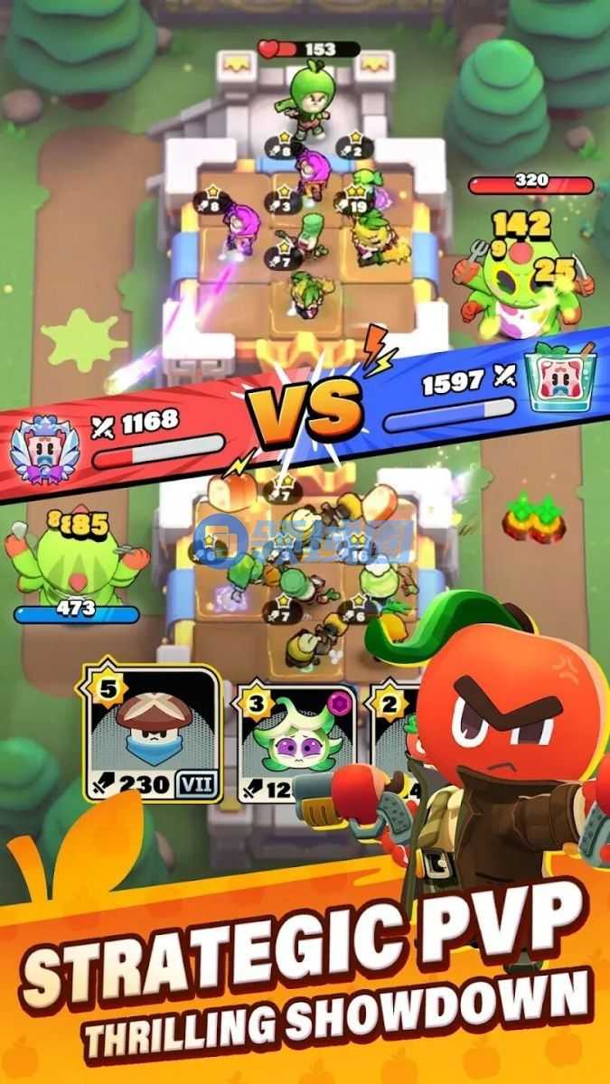 介绍:朝夕光年发行,前段时间很火的蔬菜拟人的设定。玩法上有点像自走棋+塔防的玩法,玩家有固定的炮台位置和每回合恢复的行动点数,需要消耗不同的行动点数将各种蔬菜炮塔放在炮台上,蔬菜炮台之剑有阵型加成、合成升级等类似自走棋的规则,然后每个回合和对手PK防守来袭的敌人,并穿插一些PVP的内容。