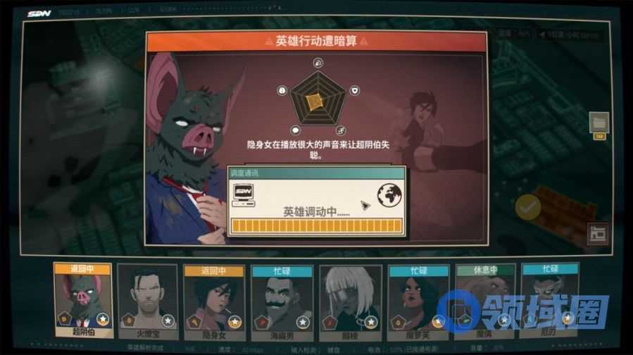 在剧情的设定里,玩家扮演的机甲侠是一个因为机甲损坏而不得不担当英雄派遣客服的落魄角色,这个角色定位首先合理化了上帝视角的植入,玩家扮演角色的工作就是对其他角色发号指令,是远离现场的”局外人“,这使得游戏将整个派遣服务是游戏叙事的一环,游戏将它数据化、策略化并不会对叙事造成不良影响,派遣英雄的过程也承担起人物塑造得重任。
