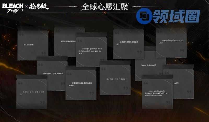 《境·界 刀鸣》官网“心愿汇聚”活动全球同步开启,各位小伙伴可写下对《境·界 刀鸣》的寄语,投入虚拟漂流瓶。在活动中不仅能阅览来自世界各地小伙伴的真诚留言,你的心愿也将跨越区服,随波远航,被更多人看见。无论是许愿十连三中,还是期待与刀鸣世界邂逅,或者是对游戏的建议,这里有来自全球各地死神代理人的花式留言!现在就来加入,与全球死神代理人交流心得,共享尸魂界最新情报!