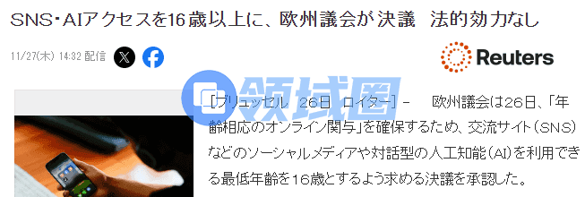 如今针对SNS与AI等时代潮流对于未成年人的各种侵害越来越严重的现状,已经有多个国家纷纷表态将严肃对待,当地时间26日,欧盟议会宣布已经通过了关于使用SNS与AI年龄限制16岁以上的决议。