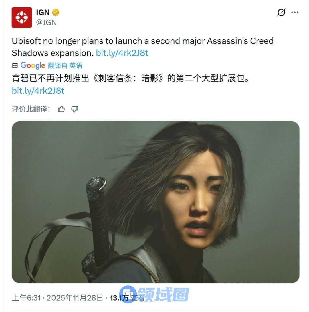 展望《刺客信条:影》,育碧仍计划推出后续内容。工作室打算保持“小规模、响应式”的更新策略,测试玩家对这种后续支持方式的反馈。