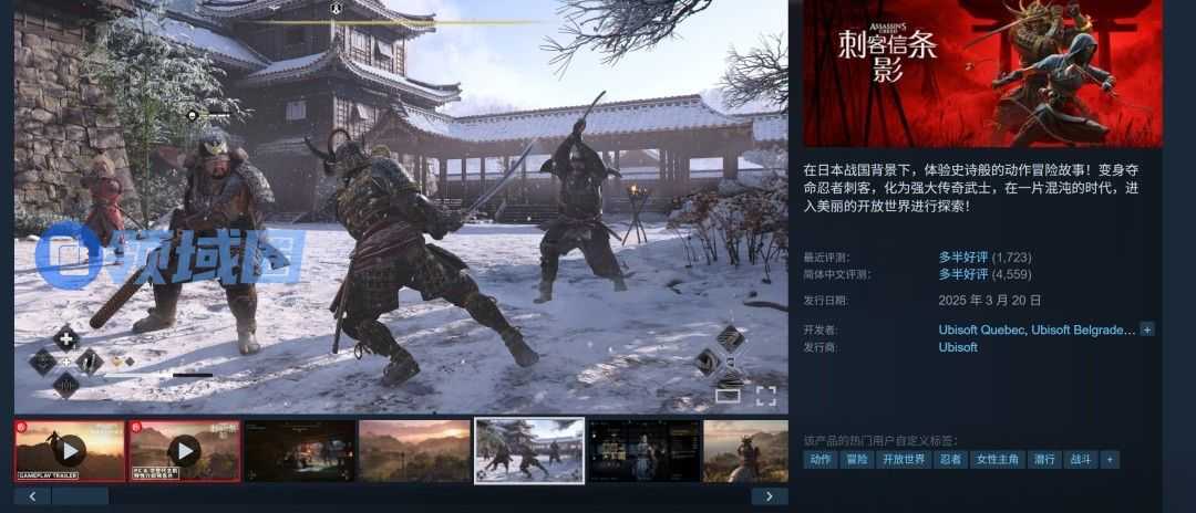 《刺客信条:影》今年3月发售,目前Steam“多半好评”