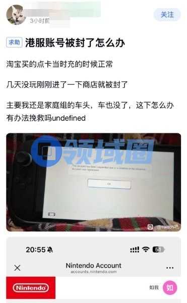 近期,国内多个社交媒体平台都有玩家在上面发帖称,自己使用的港服任天堂账号被封禁,并表示自己曾有过在购物平台上购买第三方港服eshop点卡的行为,疑似2022年大量使用黑卡充值导致的大规模账号封禁的事件复刻。