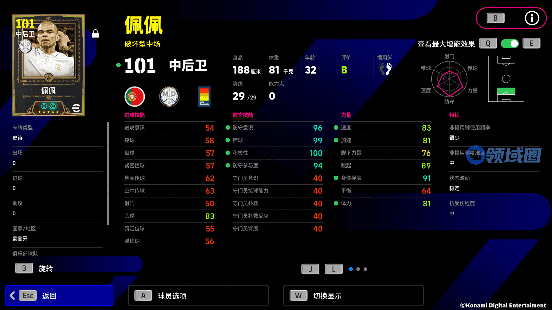 佩佩还自带【空中优势】技巧,搭配上89分的跳起和不俗的头球能力,关键时刻他也能在定位球中轰出漂亮的头槌!