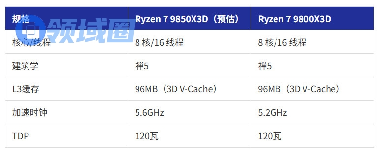 Ryzen 7 9850X3D的正式规格尚不清楚,但根据过去的泄露信息,预计它将在现有Ryzen 7 9800X3D的基础上大幅提高运行频率。