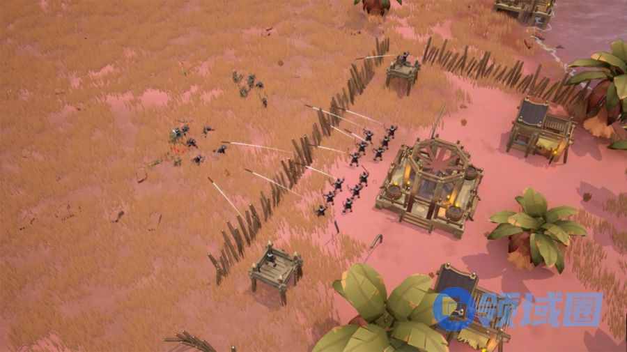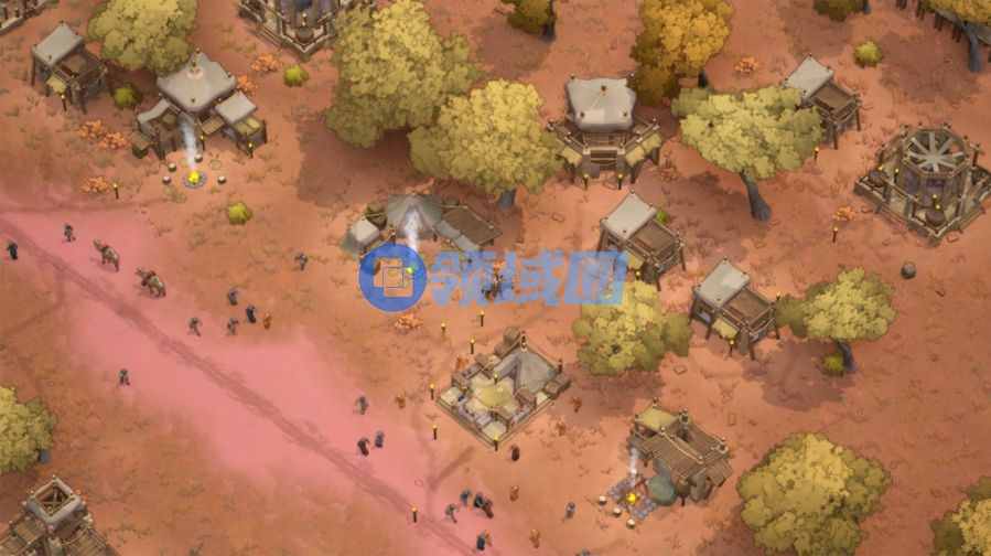 《楼兰王国》采用风格化的美术,斜俯视角镜头应该是这类策略游戏的标配,也可以让玩家一眼看出游戏的类型。