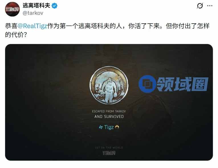 游戏开发商Battlestate Games的负责人尼基塔在社交媒体上宣布,游戏主播Tigz成为了第一个在全新且极其危险的地图“终点站”(Terminal)上完成最终任务的人。