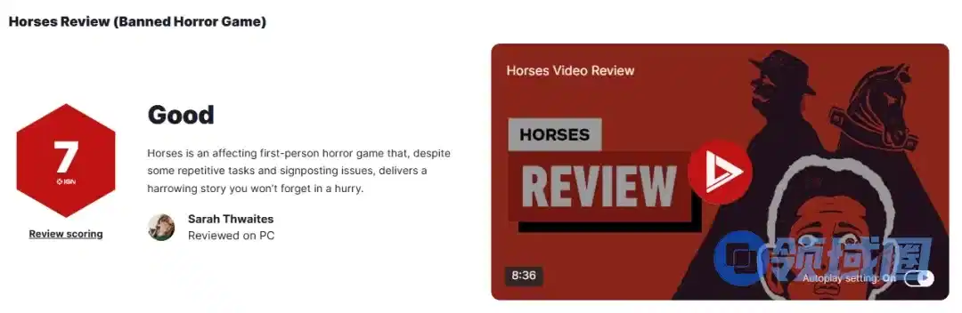 恐怖独立游戏《Horses》的媒体评测现已解禁。其中,IGN给出了7分的评价,并表示该作展现了电子游戏互动性最具冲击力的部分。