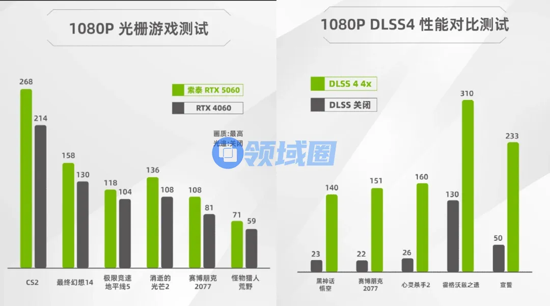 RTX 5060在游戏测试中,1080P分辨率,传统光栅游戏测试,完全能够高帧畅玩热门3A单机游戏大作,开启DLSS 4 之后,在原生帧的基础上帧数提升最高可达6倍多。