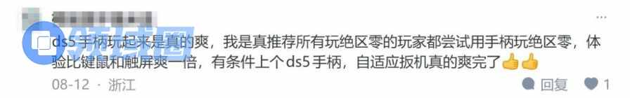 《绝区零》在手柄适配尤其是PS5原生手柄(DualSense)的调校,玩家有目共睹,多数人将手柄列为体验游戏的首选方案,更有玩家疯狂安利DualSense手柄的丝滑。