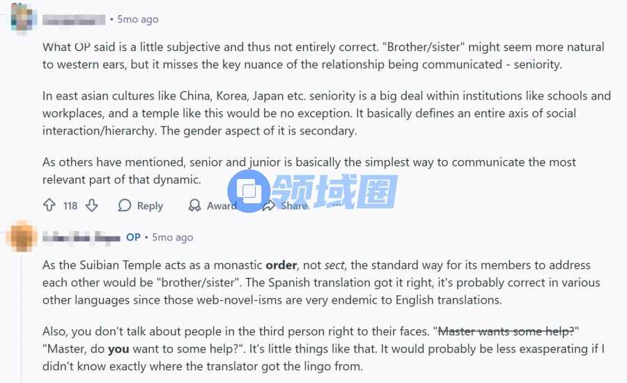 至于其他同阵营角色与随便观,则成了中国文化普及的又一扇窗口,他们会谈到“师兄、师妹”这类带有“类亲缘关系”的中国传统文化: